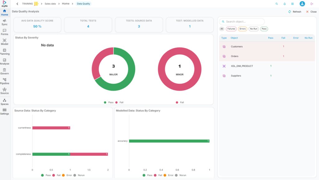 2. Data Quality Checks – Shows the graphic of data quality checks performed by xLytix along with their status.