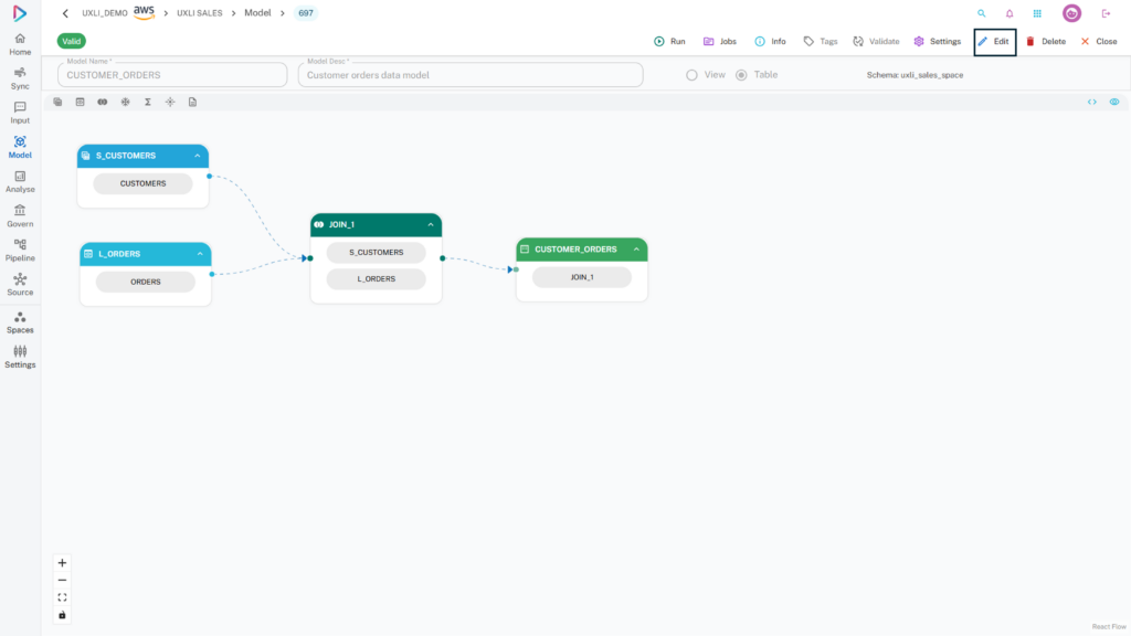 2. Click on Edit and make necessary changes to nodes, joins, filters or calculations. Click on Save.